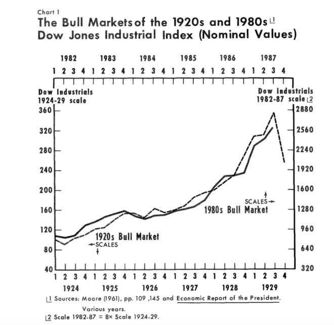 Santoni, G. (1987). The Great Bull Markets 1924-29 and 1982-87: Speculative Bubbles or Economic Fundamentals?. Review, 69.