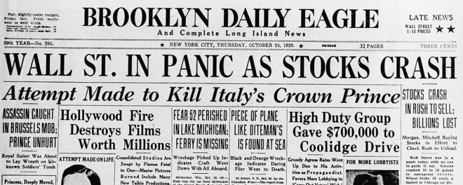 激动人心啊。你要是生活在二十年代的西方,你也会每晚在莺歌燕舞里睡去,然后清晨从激动的鼻涕中醒来。自然,股市也跟着很激动,其中最激动的是融资盘。柯立芝监管下的华尔街就是没有监管,配资唾手可得,保证金大约是25%的水平——也就是25块钱能买100块,而史学家认为当时10%的保证金率也很常见。1块买10块,下跌10%你就光了。然后Party达到高潮的一天,美联储把利率从5%j加息到6%,margin call遍地开花,融资盘就彻底崩了。