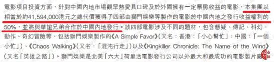 2018年12月,华谊腾讯娱乐与华谊兄弟对四部电影在国内合作发行签署4159.4万港元协议,并于2019年6月末前支付了第一笔987万港元合同款项。