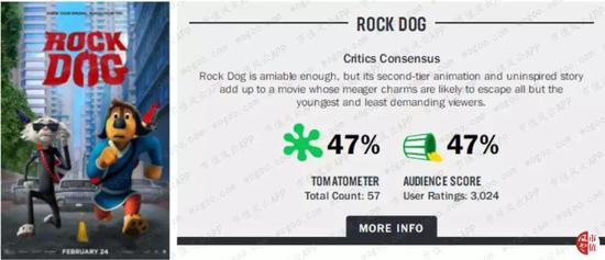 在它的衬托下,《摇滚藏獒》显得暗淡无光。不仅烂番茄新鲜度只有46%,票房也只有区区942万美元,损失严重。