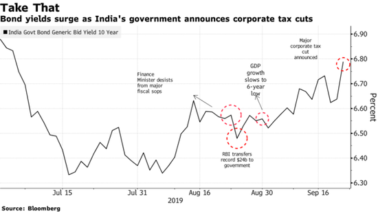 印度政府周五宣布调降企业税,为提振经济送出一份相当于205亿美元的惊喜大礼,藉以刺激民间投资,寻求拉动印度经济增速脱离六年低位。投资者对此表示欢迎,这将有助于刺激经济增长和企业利润。