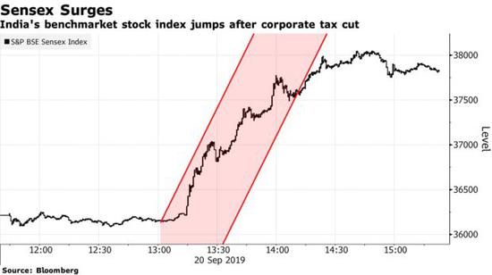 印度财政部长西塔拉曼(Nirmala Sitharaman)在记者会上表示,实质企业税率将由30%降至25%,她指出这将与其他亚洲国家大致相当。减税消息立即引发印度股市跳涨逾3%。