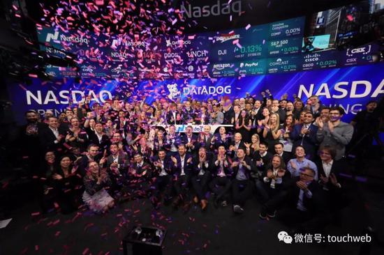 Datadog开盘价40.35美元,较发行价上涨49.44%;收盘价为37.55%,较发行价上涨39.07%,市值突破100亿美元。