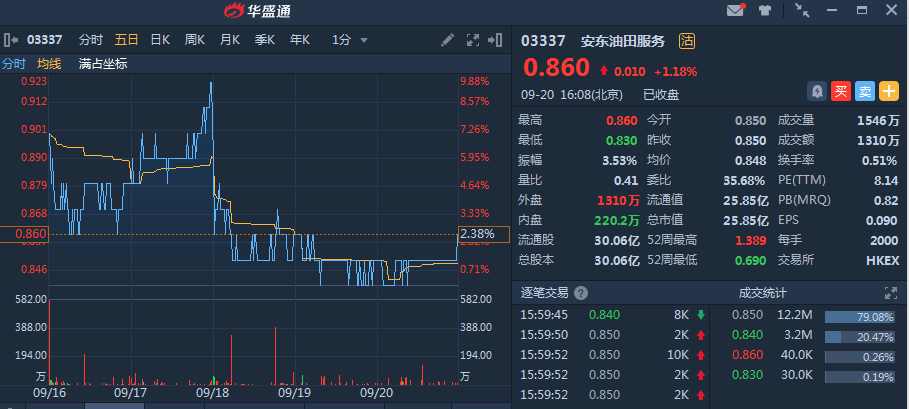 截至2019年 6月30日止之半年度业绩为营业额16.51亿元人民币,增长41.6%,股东应占盈利上升71.1%至1.45亿元人民币。期内整体毛利率微跌5.6个百分点至33.9%。集团为客户提供之服务,包括油井服务,以高端的陆上压制和酸化,防砂及固井。提供全面的解决方案。重点在高技术要求的地质情况下,增加油气产能,延长油井寿命。为国内主要供应商之一。同时跟国际大型油田服务公司