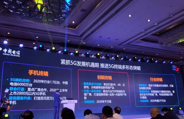 陆良军称,2020年中国5G手机将达到1.7亿台,中国电信将占6000万。