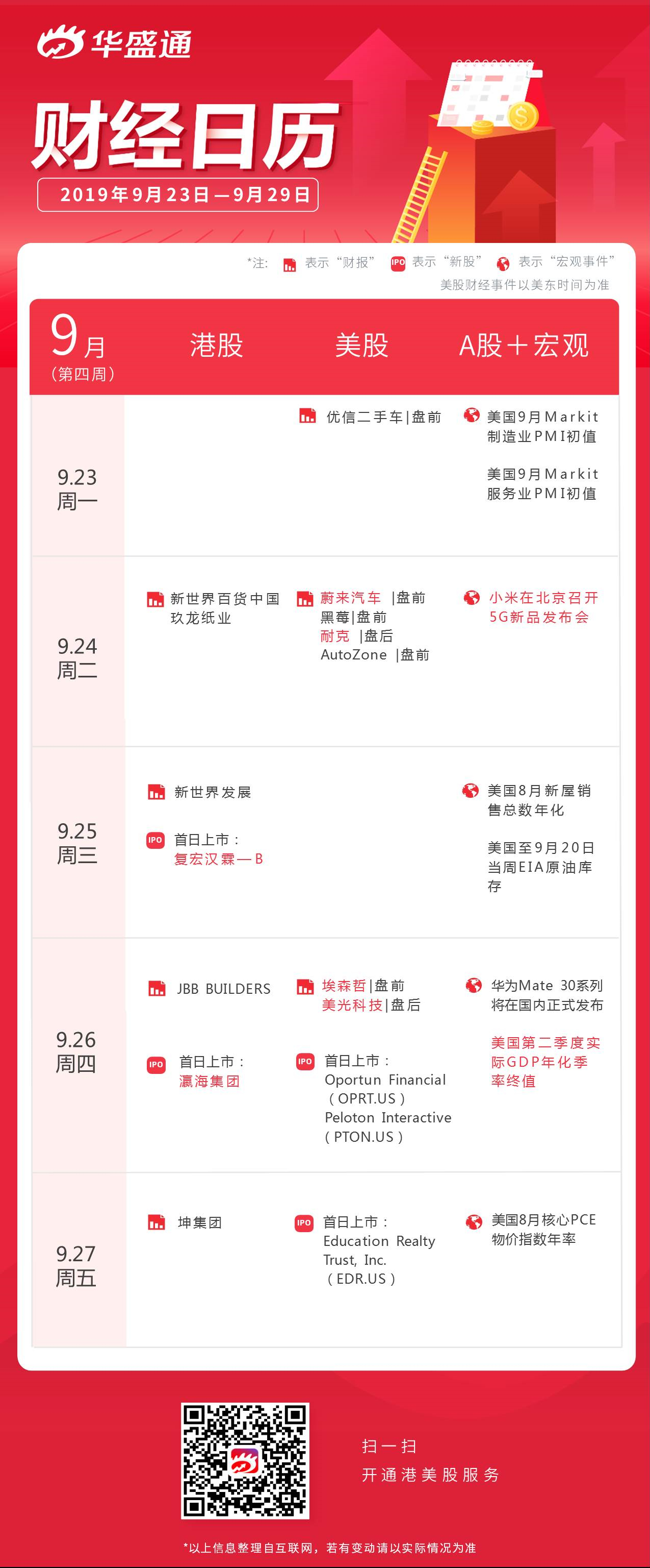 以上即为本周港美股、A股及宏观资讯一览,祝新的一周投资顺利~点击“日历”专区,了解本周更多财经大事↓