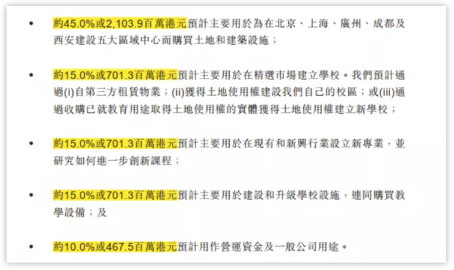 其次,翻看许多IPO公司的募投项目,可以发现补充流动资金和偿还银行贷款是常见项目。有的公司95%未分配利润在上市前一年突击分掉,资产负债表的货币资金主要来自于银行短期和长期贷款,然后再计划募集几亿元甚至10多亿元用于补充流动资金,完全是在变相拿公众股东真金白银给自己分红。而根据东方教育的招股书披露,其上市募集资金中用于【营运资金及一般公司用途】的比例仅为10%,也不存在偿还贷款的操作。