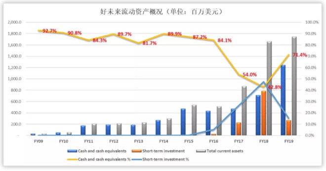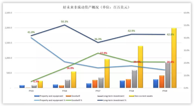 当然,这并不意味着好未来是重资产,或新东方的资产结构不健康之类,两家公司在近些年已经成长为教育行业的巨无霸,不断对外投资和并购,和美股市场会计准则的因素,所以两家公司在财务报表中的【短期投资】、【长期投资】或【商誉】的比例和数字持续增长。