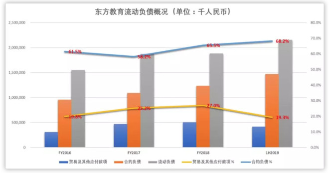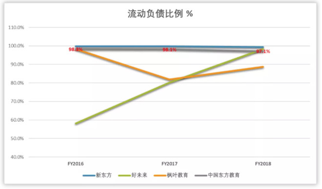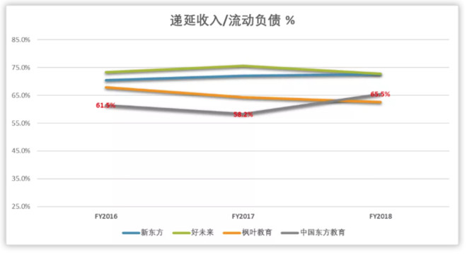 其次,公司流动负债中几乎没有涉及有息贷款,主要是以【合约负债】为主,即预收学费,其比例基本稳定在60%以上,跟同业基本类似。