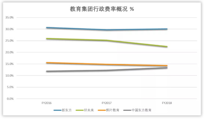 但是,东方教育同样因为职教赛道的因素,并不需要类似K12培训机构不断高薪聘请老师和砸钱搞课程研发,所以公司的行政费率一直维持在同业低位,接近K12院校的枫叶教育,并无异常。