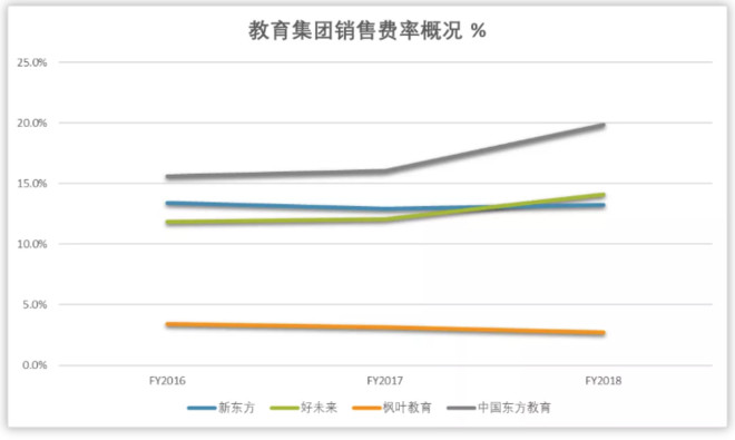 尽管东方教育一直强调自己是职教龙头,但因为细分赛道的属性并不像K12院校或本科院校,只要有院校就不愁没学生就读,即使剔除近两年大幅扩张的因素,公司的销售费率仍旧需要维持在15%以上水准,略高于K12培训机构。