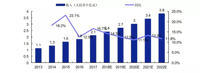 IT培训层面,IT职业技能教育的总收入在2013-2017年的年复合增长率达到了 15.6%,预计2017-2022年的年复合增长率为12.7%,在很长一段时间内将持续处于10%以上的高速增长区间,增长速度极快。但是,这个数据的背后,是包含成人培训在内的统计口径,并不单指新华教育所服务的年龄段(15-21岁)。
