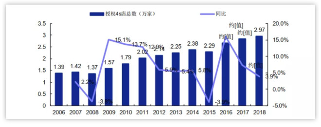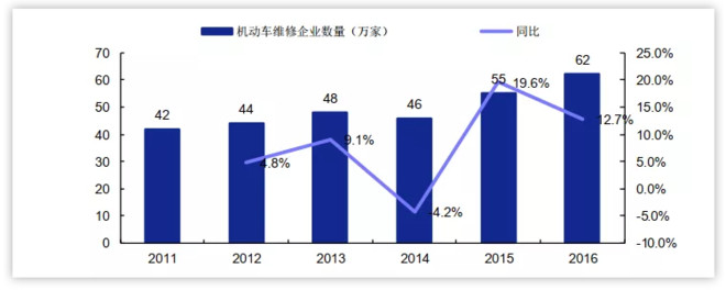 提供汽车维修服务的机构可分为4s店及其服务网点与各种规模的维修厂:全国机动车维修企业数量2011-2016年呈上升趋势,年复合增长率为8.1%,全国授权4s店在2006-2018年的年复合增长率为6.5%,保持稳定增长状态。