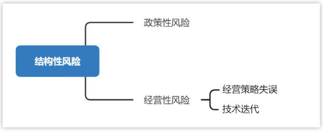 结构性风险层面,主要有政策风险、经营风险,其中经营风险又可以分为企业经营策略的失误和技术迭代的风险。