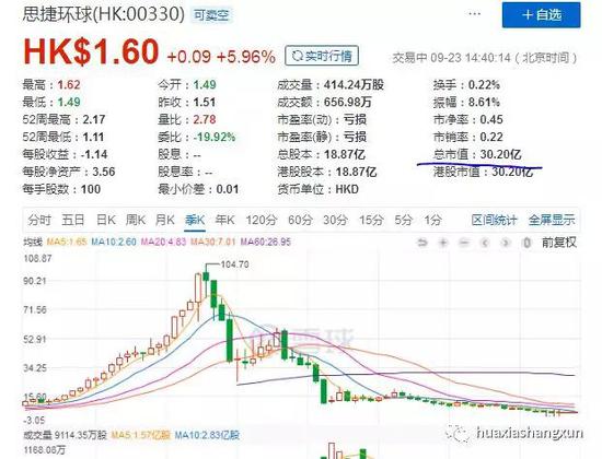 与邢李源抛售股票成正比的是,自邢李源退出思捷环球管理层之后,思捷环球的股价差不多就是江河日下,股价由2007年的最高位104港元跌落至如今1.6港元/股,市值也由1770亿港元缩水到30亿港元。