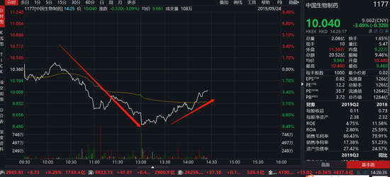 中国生物制药今日先跌8%,此后迅速反弹,这是否意味着中国生物制药中标基本符合预期?他表示:我估计有投资者把握低价买入,持续单日下调最多达8%,一般投资人对药品认识有限,中标结果对股价影响没有这么快。