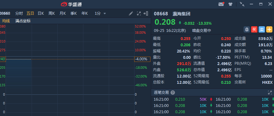 瀛海集团(08668.HK)暗盘高开4.16% ,截止16:21,瀛海集团暗盘段报0.208港元,较发行价0.24港元跌13.33%,暂成交191万港元,最新总市值2.496港元。
