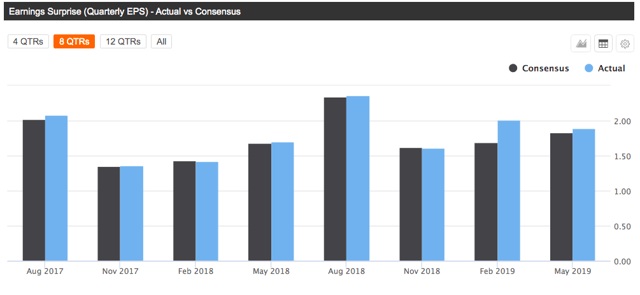 好市多在过去8个季度中有6个季度的盈利均高于华尔街预期。