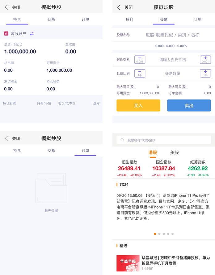 账户:我们提供了港股账户和美股账户,大家可以根据自己的偏好选择市场进行操作,点击账户旁边的切换按钮即可。
