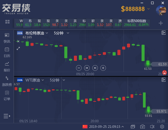 周三晚,国际原油双双扩大跌幅,布伦特原油日内跌幅扩大至2%,现报61.75美元/桶;WTI原油日内跌幅扩大至近2%,现报56.23美元/桶。此前据知情人士称,沙特已经提前恢复了受损的原油产能。