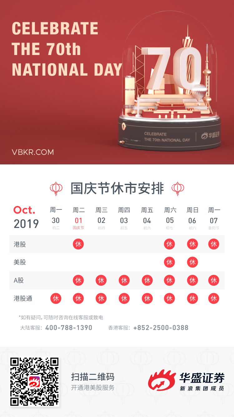 1、国庆7天假期,港股休市共4天,10月2日、10月3日、10月4日正常开市;