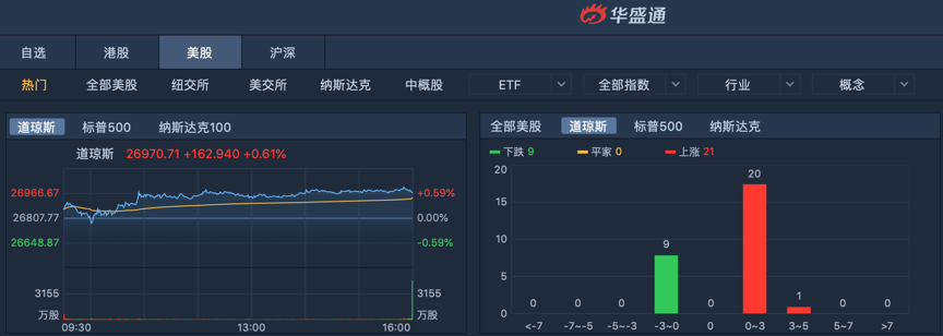 周三,美股在盘初下挫后逐步走强,最终集体收涨。其中,道琼斯指数涨0.61%,报26970.71点;标普500指数涨0.62%,报2984.87点;纳斯达克100涨1.12%,报190.07点。