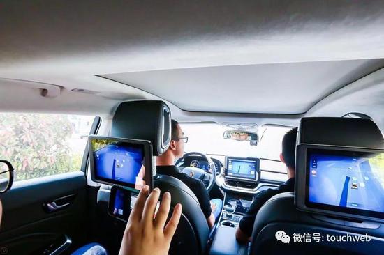 体验全程中,乘客区屏幕实时显示了路面上的行人、汽车,甚至一些传统盲区的路况。即使是车辆遮挡,也能提前看到前方红绿灯变化及等待时间,所有车况路况一目了然。