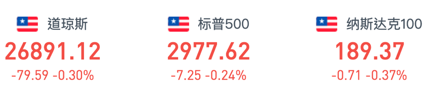 周四,美股中段低位震荡,道指和标普500指数尾盘一度收复失地,三大指数终集体收跌。截至收盘,标普500指数跌0.24%,报2977.63点;纳指跌幅0.58%,报8030.66点;道指跌幅0.30%,报26891.12点。