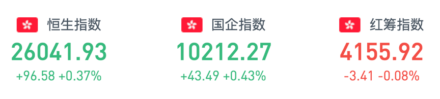 周四,恒生指数早盘高开,震荡下行后尾盘走高。截至收盘,恒生指数涨0.37%,报26041.93点,全日成交额达703.25亿。国企指数涨0.43%,报10212.27点,红筹指数跌0.08%,报4155.92点。