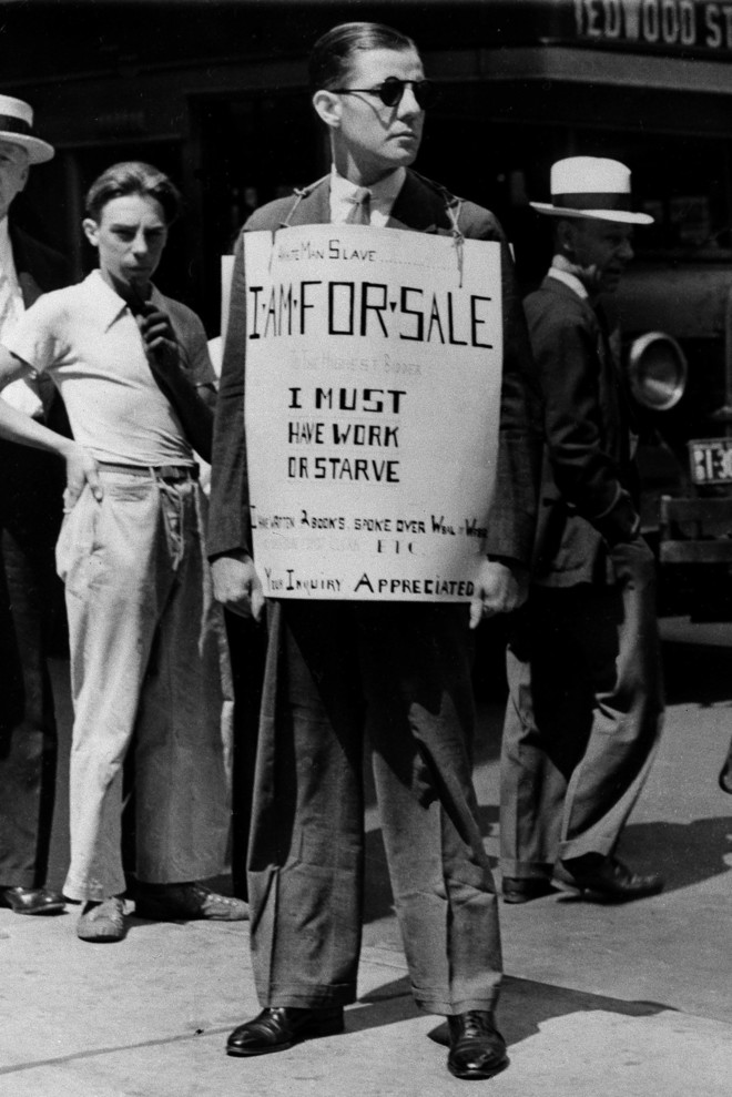 乱世出奇典。《证券分析》第一版出版于1934年,同一年希特勒从总理加冕为“元首”,天下大抖。大家都知道美国1929年大崩盘,虽然股市如纸牌屋一样倾覆,但切肤之痛还是经济上的灾难。从1929年到1933年这四年间,美国整个国家生产腰斩,人均真实可支配收入砍掉了三分之一,四分之一的劳动力失业。但是数据会粉饰灾难,给你一个大致的平均水平,你可能认为1/3不致命,实际上社会底层已活不下去。当时大量农民闹粮荒,不得不以狩猎果腹——美利坚大陆往往是饥荒的解决方案(比如爱尔兰数以百万的土豆逃荒移民),但这次居然落魄成了问题本身。