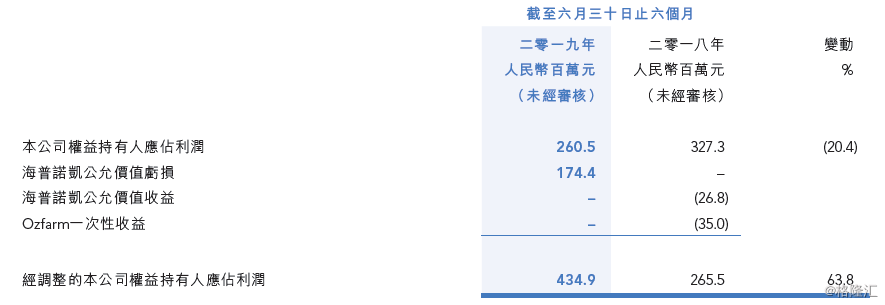 唯一不那么“好看”的数据则是公司权益持有人应占利润,上半年公司录得2.6亿元,同比下降20.4%。但部分变动主要是由于海普诺凯公允价值产生变动所致,与公司主营业务并无干系。扣除该部分影响后,公司经调整公司权益持有人应占利润为4.3亿元,同比增长63.8%。