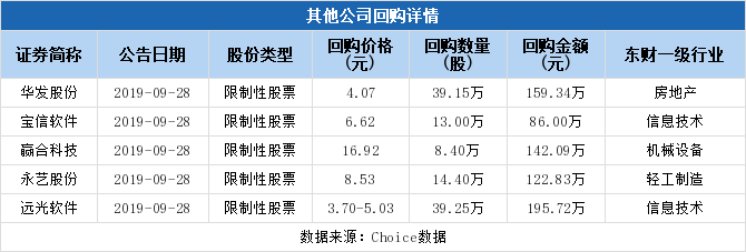 从股价来看,公司最新收盘价为24.95元(以2019年9月27日计),回购价格为13.79元,较最新收盘价的溢价为-44.75%。公司股价近三个月下跌5.60%(后复权)。