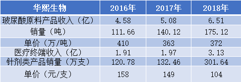 以玻尿酸针剂为例,前者需要花费20元左右的原材料成本,出厂价摇身一变达到100-200元/支,但一经市场发售,终端价格可高达6000元/支。根据华熙生物披露的销量,2016年-2018年,华熙生物的医疗终端收入为1.91亿元、1.97亿元、3.13亿元。针剂类产品销量分别为,120.78万支、132.46万支、301.64万支,如此可测算出这三年射玻尿酸最高的平均价格分别为158元/支、149元/支、104元/支, 而这些100元左右的产品毛利率高达80%以上。