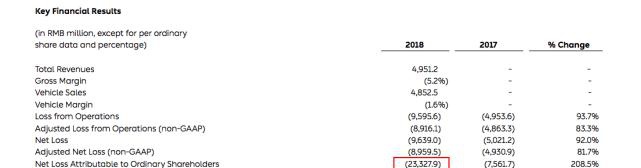 李斌给出的详细数字是:到2019年6月蔚来的Non-GAAP的亏损是220亿人民币,其中有100亿都是花在了R&D(研发)上。他选择的是非通用会计准则(Non-GAAP)计算的亏损,同时计算的并不是归属普通股股东的净亏损。