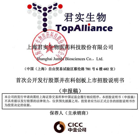 君实生物本次科创板上市申请的保荐机构为中国国际金融股份有限公司,审计师为容诚会计师事务所(特殊普通合伙),律师为北京市嘉源律师事务所,评估机构为中水致远资产评估有限公司。