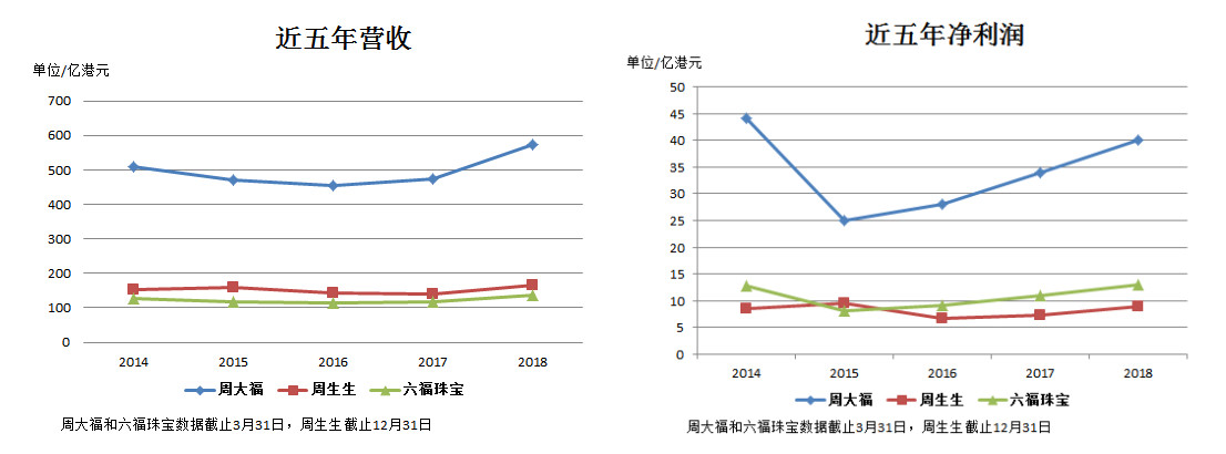综合来看,周大福成立最早,虽然上市最晚,但市值最大,算得上是港股珠宝界的老大哥;六福珠宝成立最晚,但成长速度最快;周生生成立时间也很长,拥有自己的鉴定中心和研发中心,实力也不容小觑。