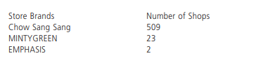 截至2019年6月30日,周生生共拥有534家门店,其中周生生品牌店509家,MINTYGREEN23家,MINTYGREEN是2018年下半年刚成立的新品牌,目前对公司收入贡献不是很大。