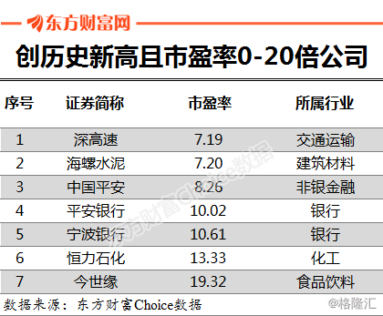其中,最新市盈率0-20倍的7家公司中,除了深高速和今世缘之外,另外5家公司均为千亿市值公司,中国平安甚至是A股总市值第三位的万亿公司。