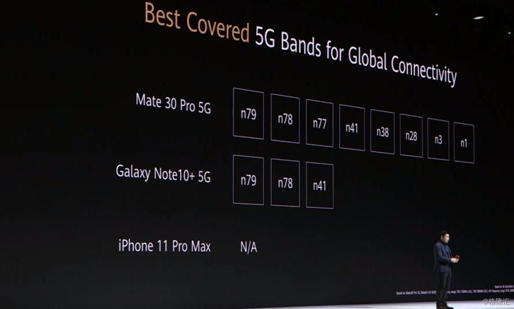 值得注意的是,Mate 30 系列是今年下半年的旗舰机中,唯一一款同时支持 NSA 和 SA 组网的 5G 手机。在慕尼黑的发布会上,余承东在介绍射频性能时显得尤为自信。