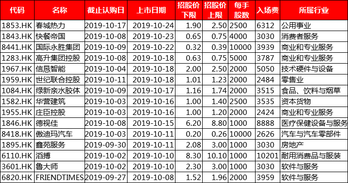 在10月将上市的公司中,专注于女性向游戏市场的手游开发运营商FriendTimes和国内百强物业管理领先企业鑫苑服务已于9月30日前结束招股。