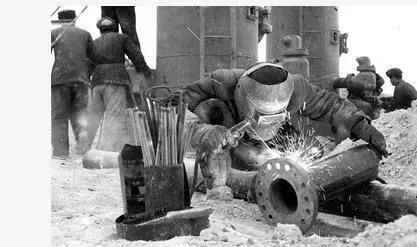 图为1959年,新疆克拉玛依油田工人在建设九号集油区,新华社记者 武纯展 摄