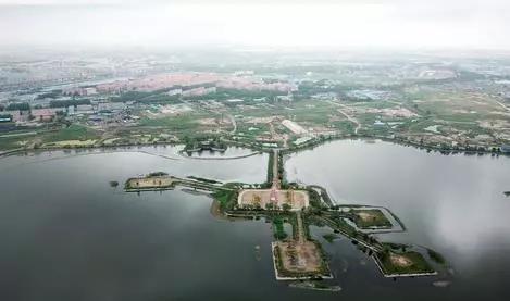 图为四面环水的大庆油田第一采油厂第七油矿503采油队二号丛式井平台井组(无人机拍摄)。新华社图片