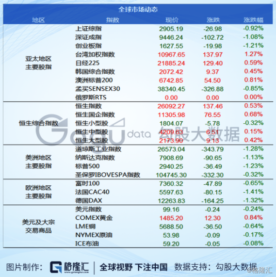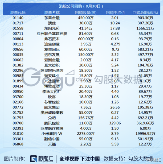【港股】9月30日,香港恒生指数收盘涨0.53%报26092.27点,月累计上涨1.4%,季度累计下跌8.6%;恒生国企指数涨0.51%,月累计上涨1.2%,季度累计下跌6.3%;红筹指数涨0.43%,月累计上涨1.2%,季度累计下跌6.7%。全日大市成交732.96亿港元,前一交易日为531.06亿港元。电信板块多数上涨,中国联通、中国移动涨逾1%,中国电信飘红。受中国石油发现10亿吨级大油田的利好影响,能源板块出现明显反弹,中煤能源涨逾2%,中国石油股份、中国石油化工股份、鸿宝资源、中石化炼化工程涨逾1%。科网股集体走低,金山软件跌逾7%,金蝶国际跌逾4%,联想控股跌逾1%。其他热股方面,百威亚太上市首日大涨4.44%,市值超3700亿港元。麦格理集团首予百威亚太跑赢大市评级,目标价为34港元。TBKSHLDGS上市首日大涨60%,而LFG投资控股上市首日破发,大跌逾36%。达芙妮国际暴跌逾35%,使得两日累计跌幅近60%。此前该股在第三季度一度大涨逾200%,而在最后两个交易中遭遇获利资金离场,抹去整个第三季度涨幅。