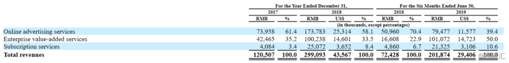 具体而言,截至今年上半年,公司线上服务、企业增值服务及订阅服务三项取得的收入分别为39.4%、50%及10.6%。