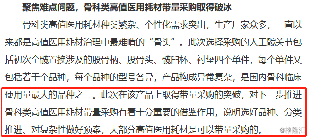 官文《江苏高值医用耗材联盟带量采购打响连环炮》中关于髋关节集采的点评