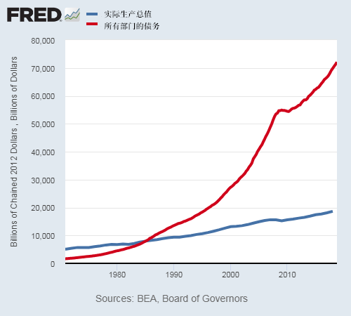 目前,美国信贷市场债务超过72万亿美元,而只有18.8万亿美元的经济担保。假设平均利率为3%(可能太低),债务每年将吞噬2.2万亿美元,占实际GDP的11.5%。这就是大萧条后经济增长如此糟糕的原因。经济正因过多的债务而遭受侵蚀。这就是为什么美联储想通过增加债务来发展经济是不可持续的。1984年,债务增加了1美元,创造了1美元的实际GDP。截至2018年第四季度,美联储要花费3.8美元的债务才能创造1美元的实际GDP。