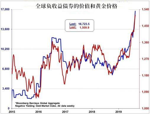 近期,全球负利率债券总额飙升至超过17万亿美元,是去年10月份的5.7万亿美元的三倍。随着利率的不断下降,投资者将越来越青睐黄金等资产,进而推动金价上涨。