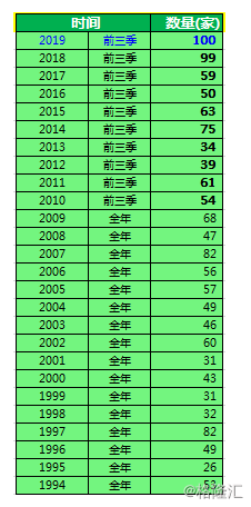 2019年主板的上市数量达到100家,超过2010年至2019年的同期表现,更是超过1994年至2009年的全年表现。