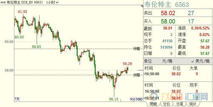 汇通财经易汇通软件显示,北京时间16:49,NYMEX原油期货上涨0.38%至52.65美元/桶;ICE布伦特原油期货上扬0.52%至58.01美元/桶。