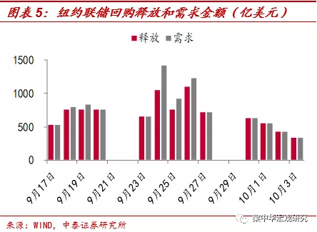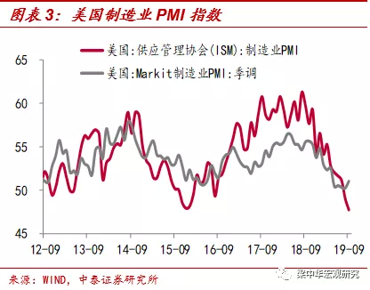 5、经济趋于下行。美国8月零售销售虽然仍有韧性,但美国9月ISM制造业PMI下跌至47.8,创2009年6月以来最低水平,其中出口订单指数更是下跌至41.0,创2008年10月以来最低水平;同时,9月ISM非制造业PMI也下跌至2016年8月以来最低水平。不仅如此,为缓解美元流动性紧张问题,纽约联储自9月17日开始累计释放资金接近9000亿美元。